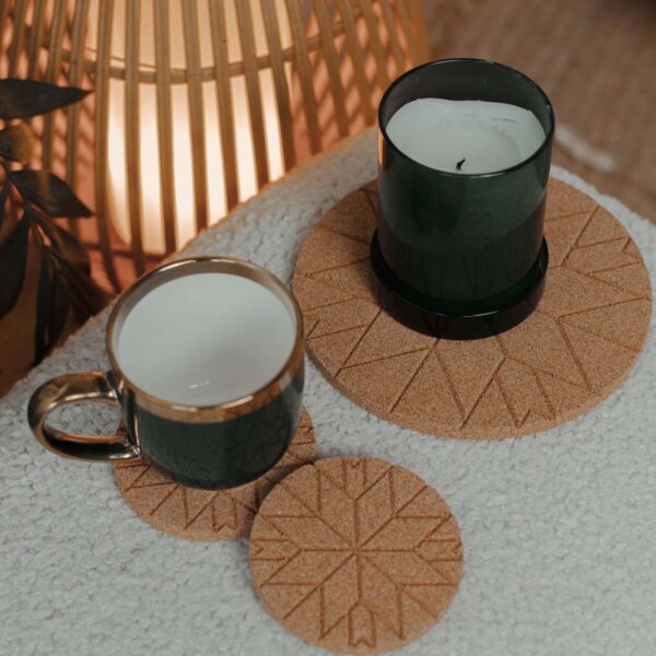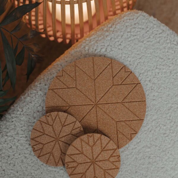 Набір коркових підставок з серії “Ornament” з використанням автентичного орнаменту “Алатир” розміром 19х19 см – 1шт, 10х10 см – 2 шт.