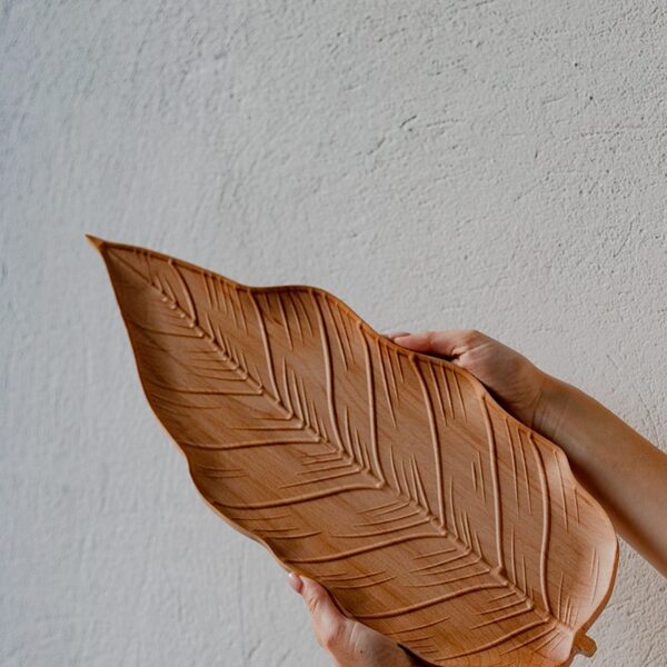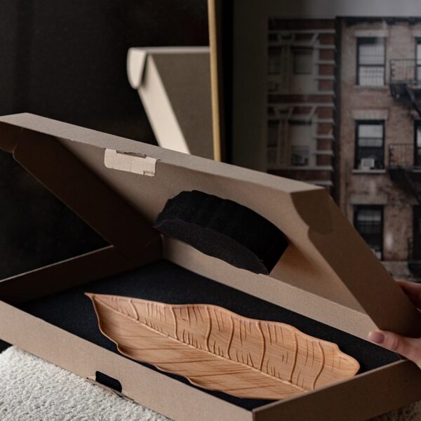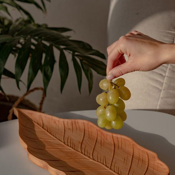 Догляд за тарілкою також легкий – достатньо протерти її м’якою ганчіркою без використання агресивних миючих засобів. Придбайте нашу дерев’яну тарілку піднос у вигляді листка й додайте натурального шарму до вашого столу. Насолоджуйтесь унікальним поєднанням естетики природи й вишуканості в кожному пригощенні.